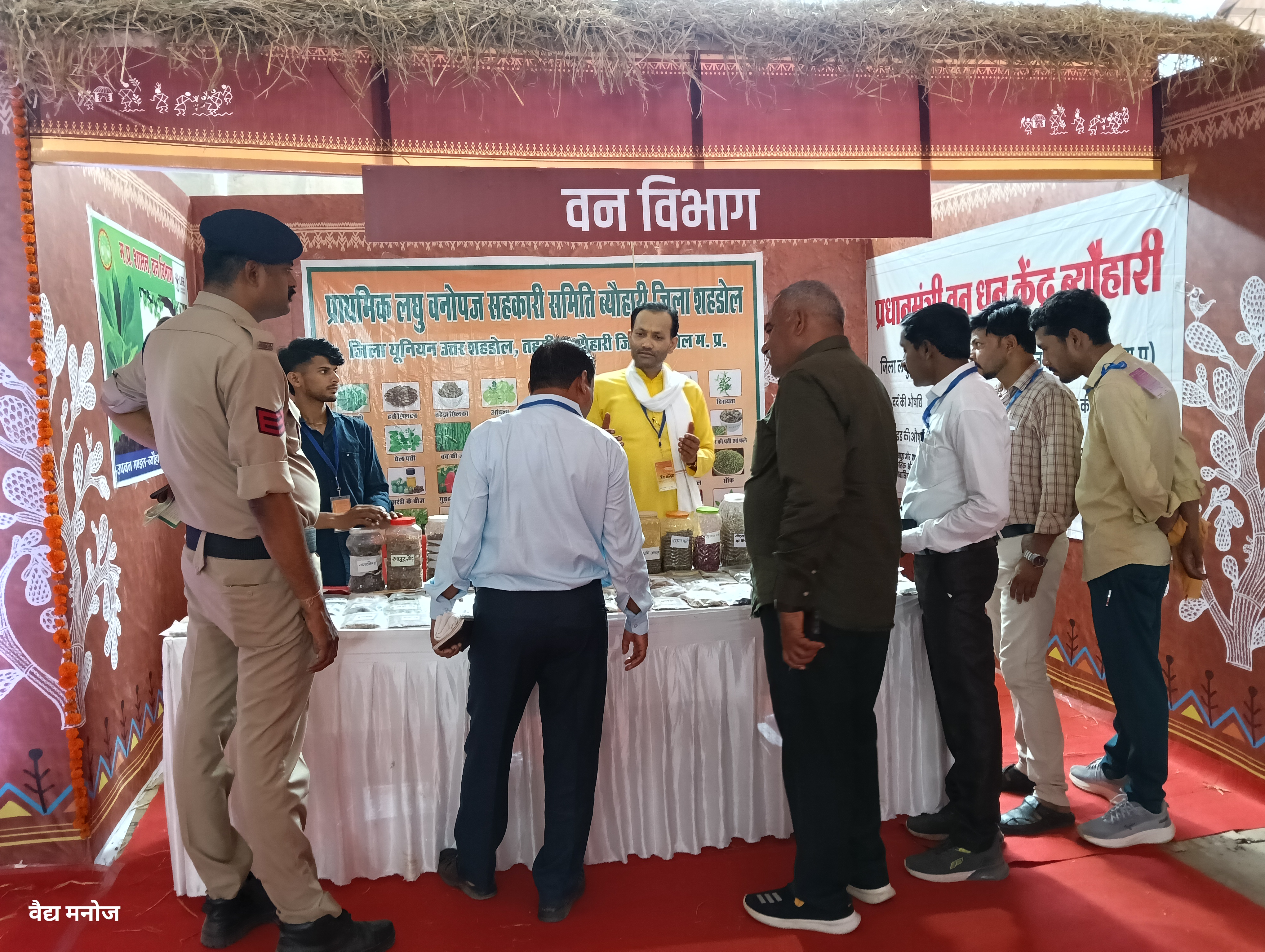 अंतर्राष्ट्रीय वन मेला भोपाल के अधिकारी के द्वारा स्लॉट में औषधि लेते हुए