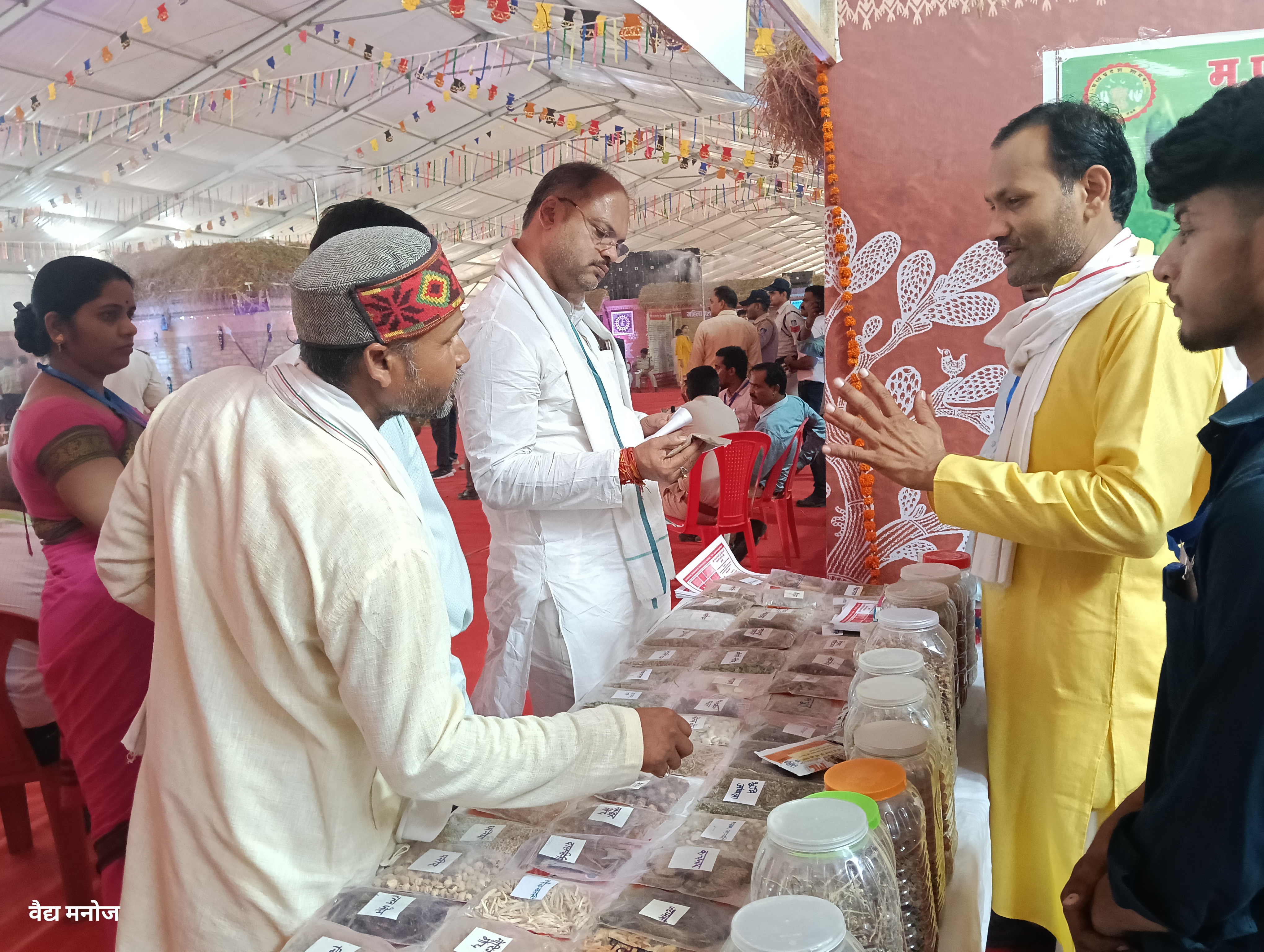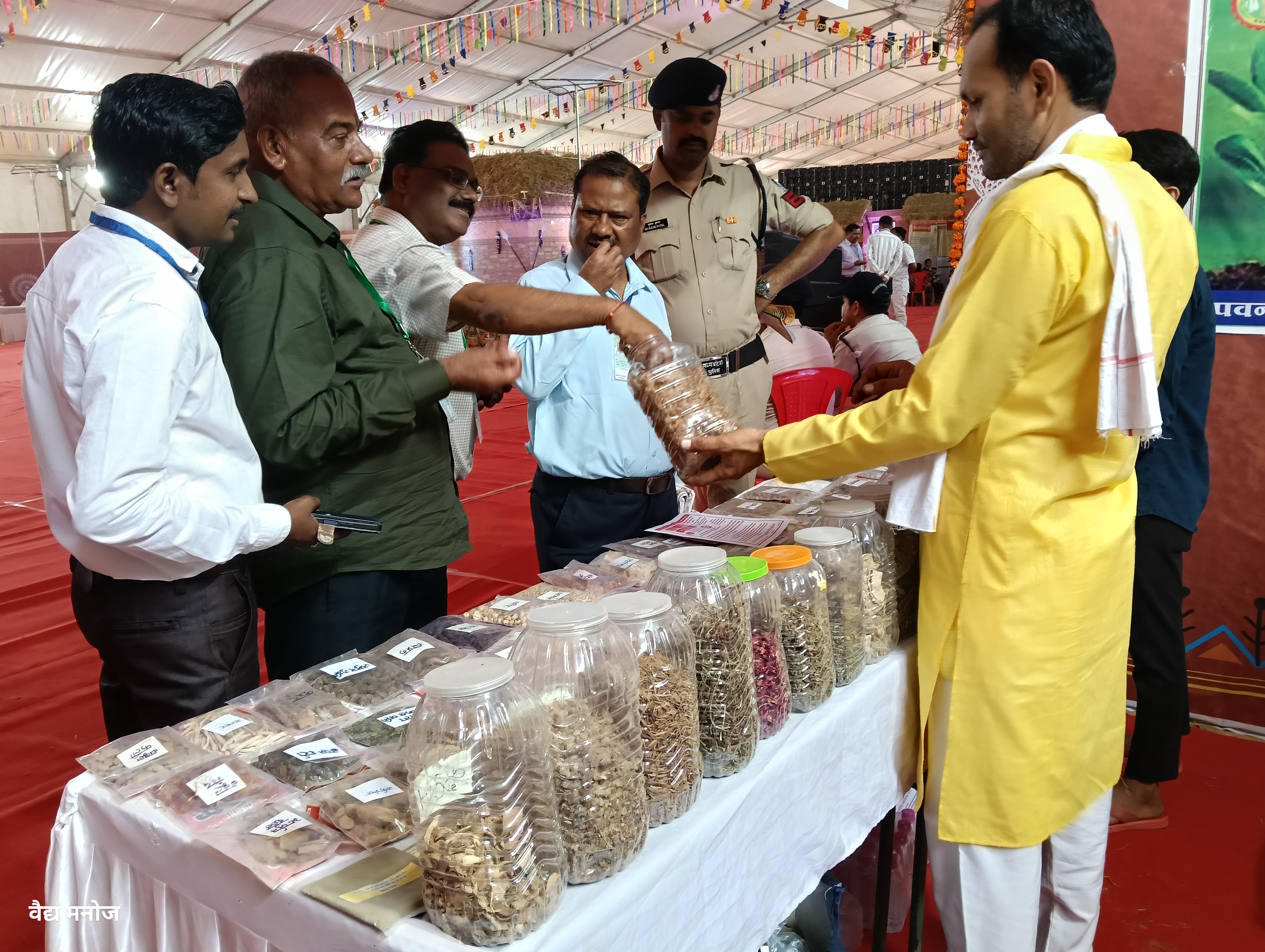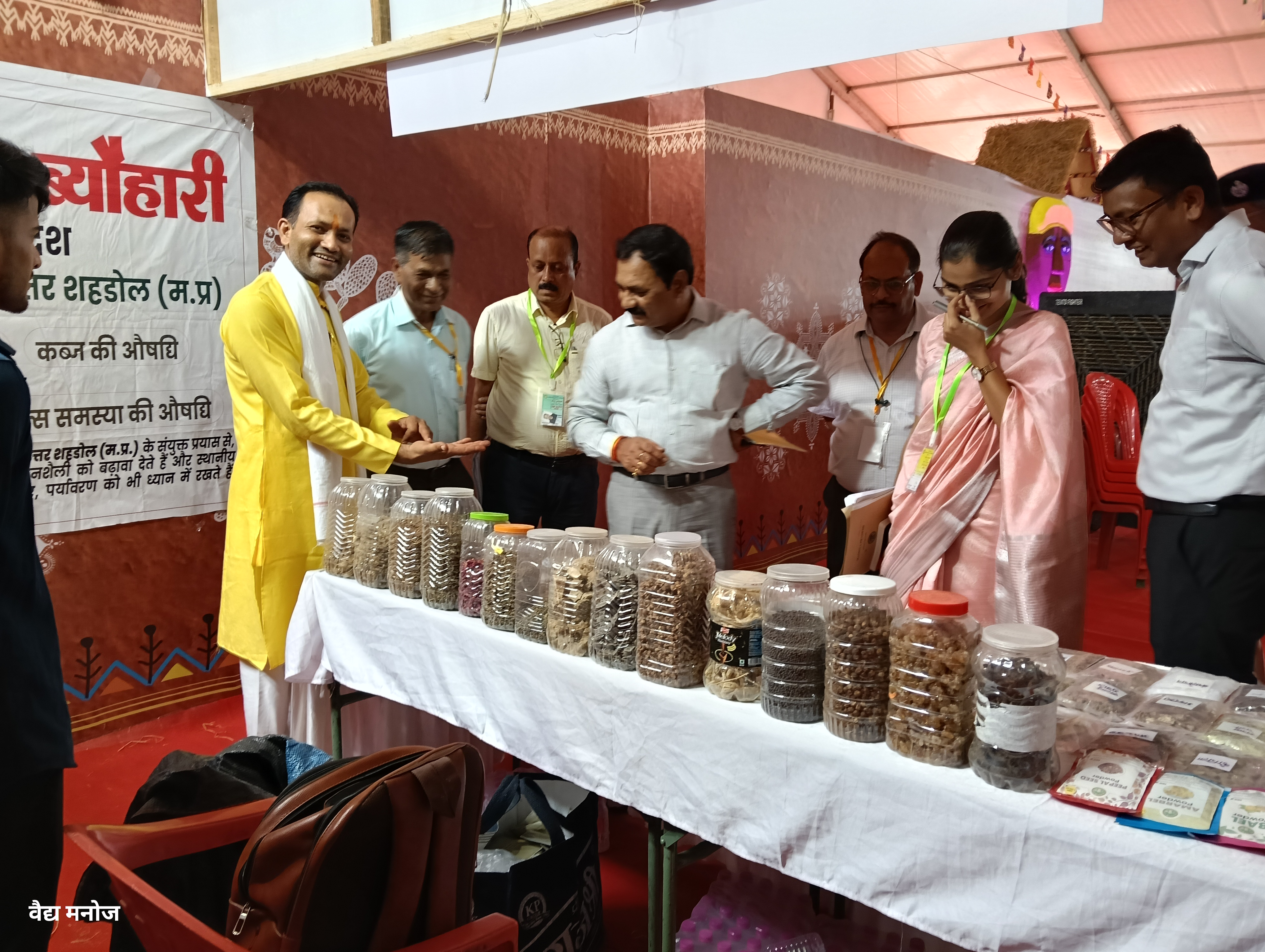 अंतर्राष्ट्रीय वन मेला भोपाल के अधिकारी के द्वारा स्लॉट में औषधि लेते हुए