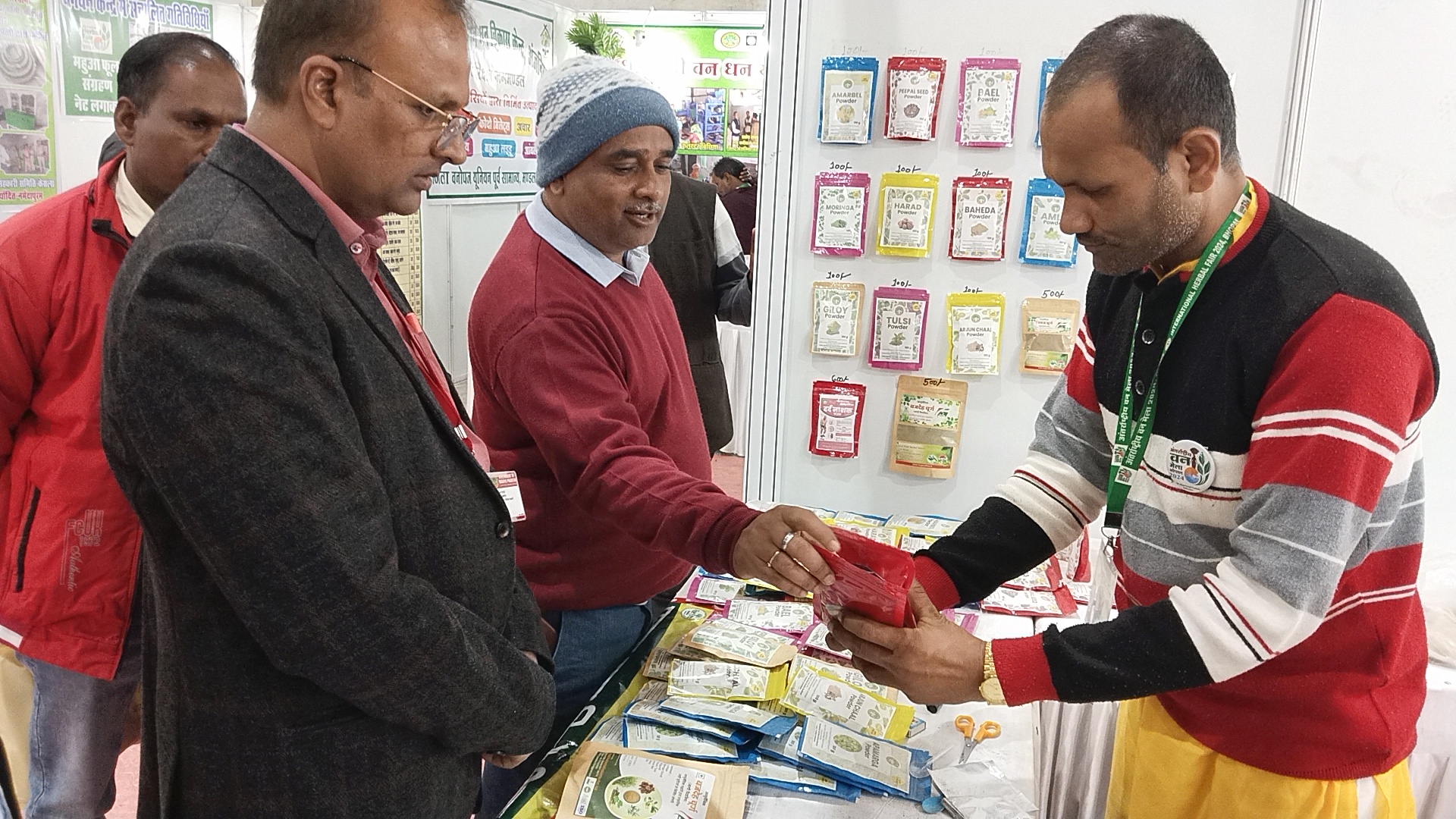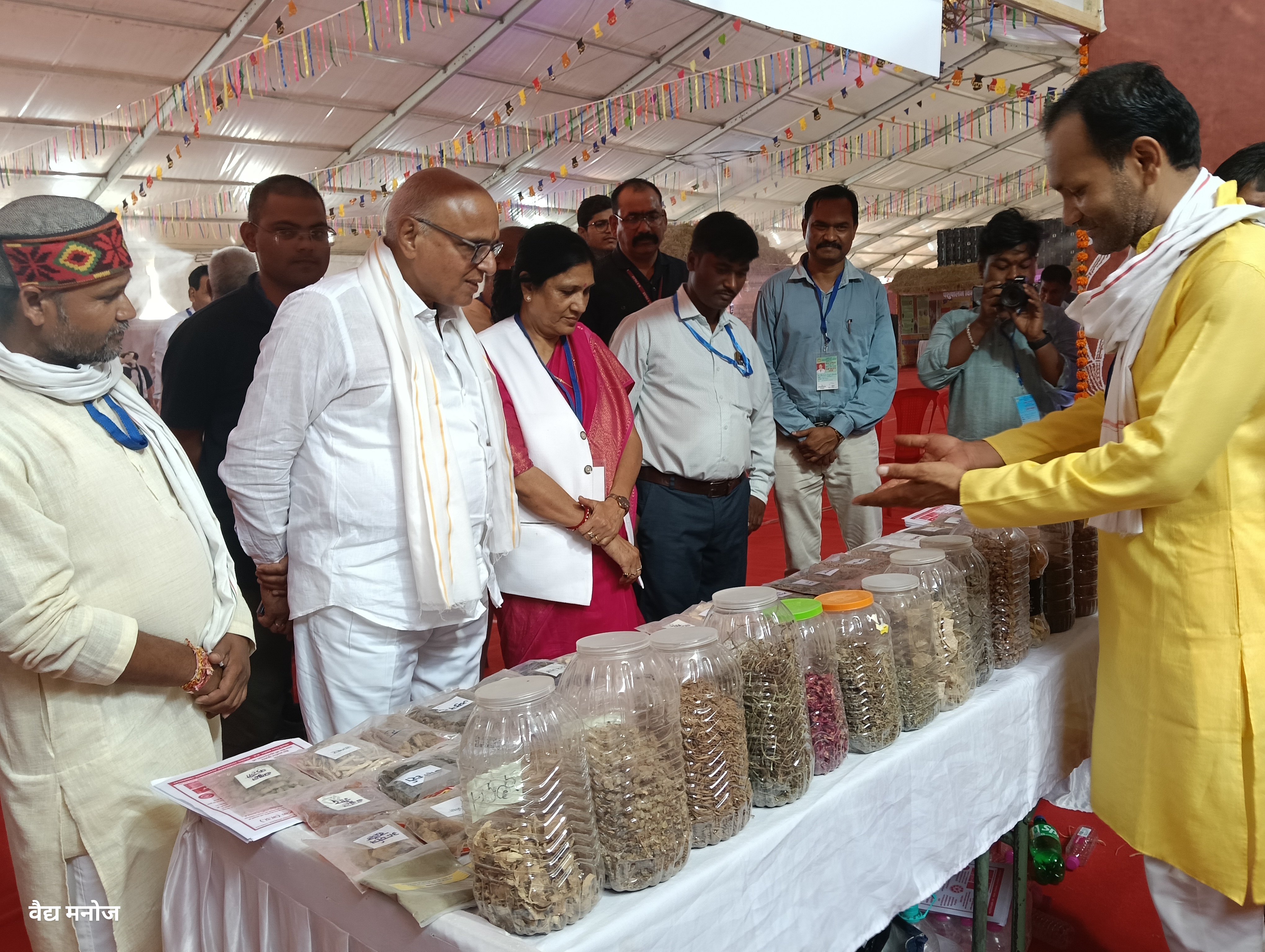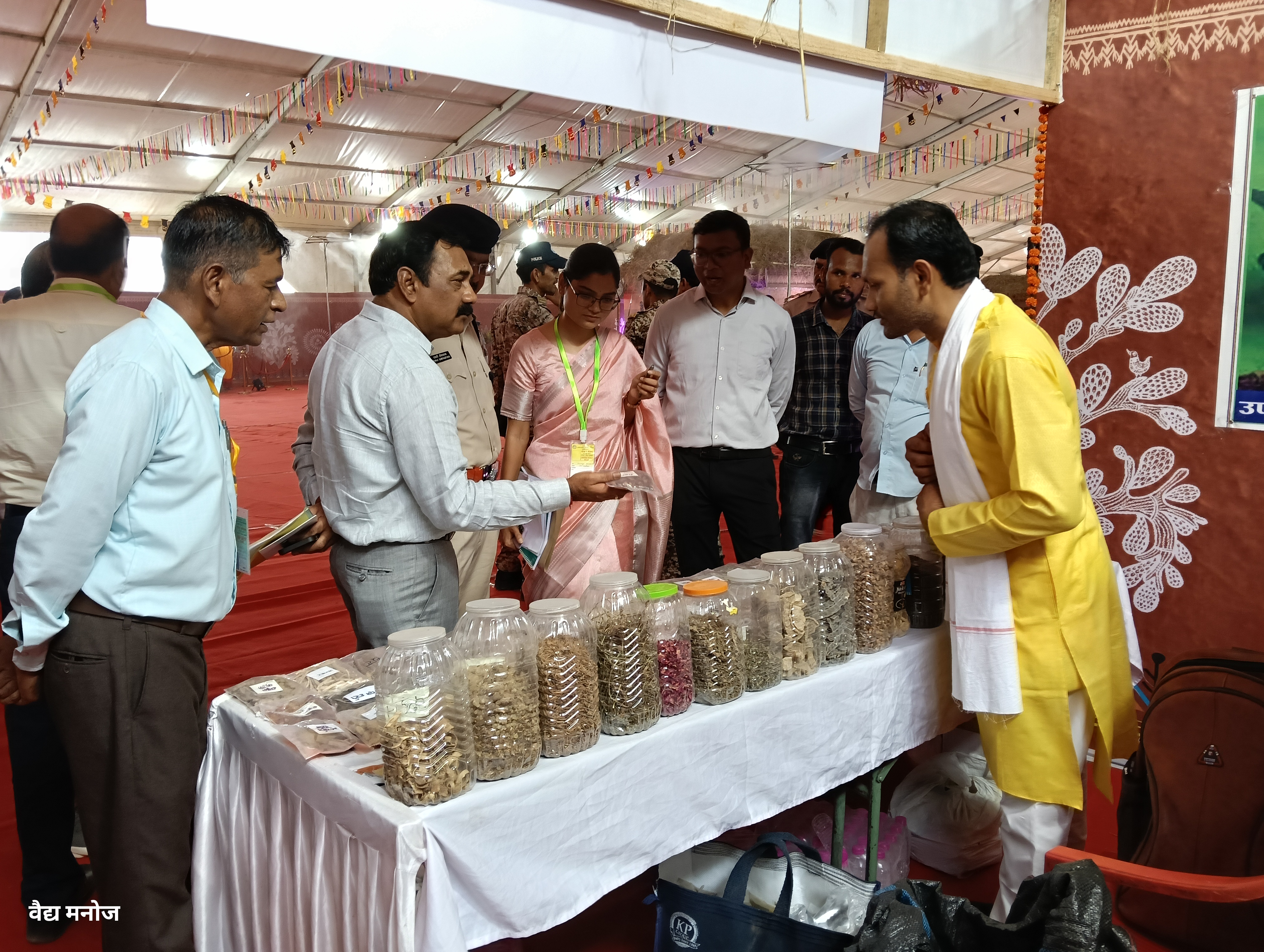 अंतर्राष्ट्रीय वन मेला भोपाल के अधिकारी के द्वारा स्लॉट में औषधि लेते हुए