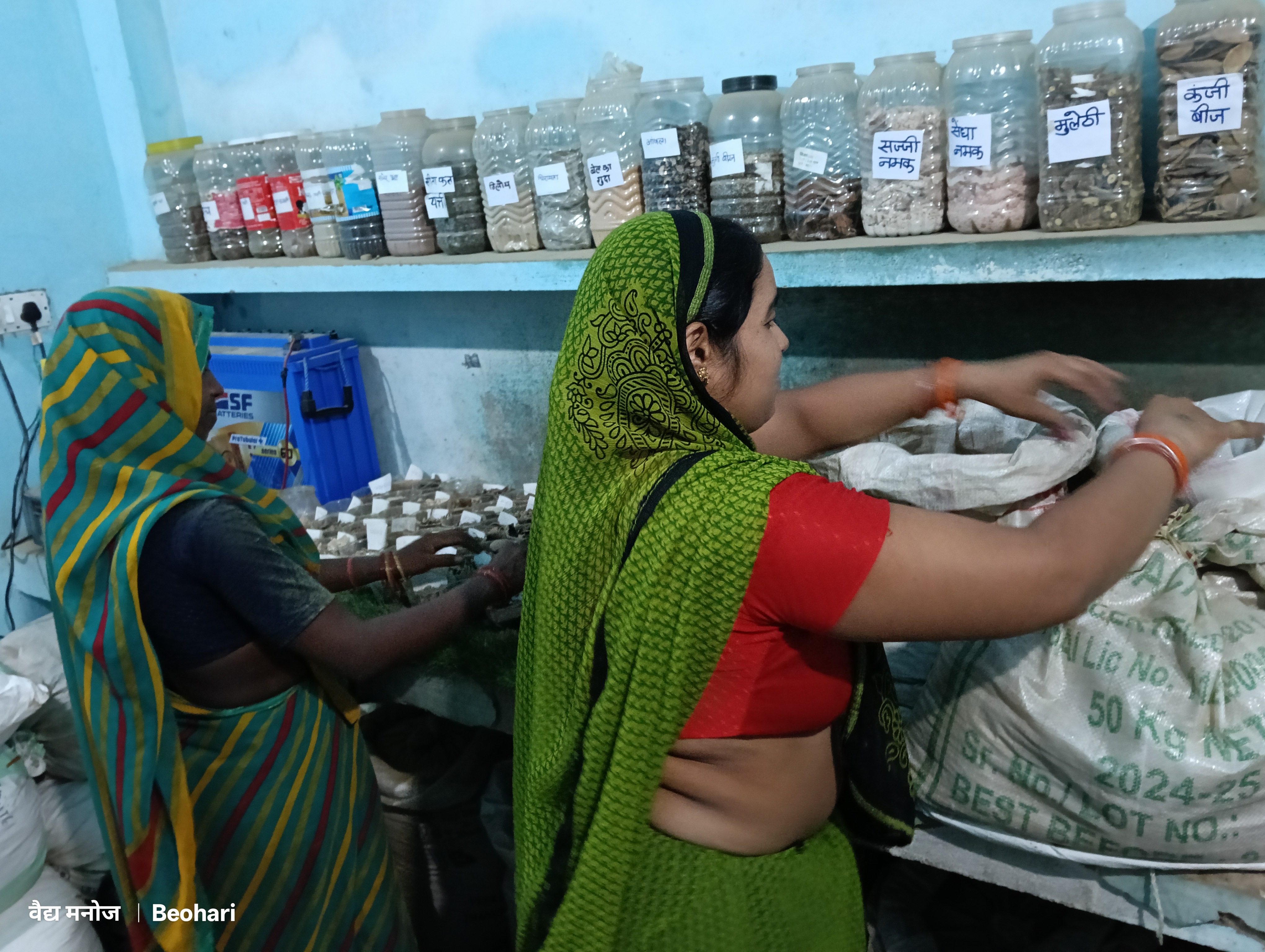 हमारी महिलाएं समितियां में कार्य करते हुए जो की औषधि को सुरक्षित रखते हुए प्रदर्शित